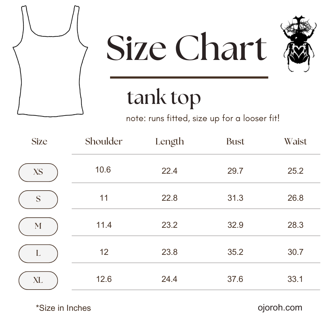 anime girl eating black beetles double sided graphic printed on 100% polyester white tank top. Stretchy and ribbed material, boasting style and comfort.