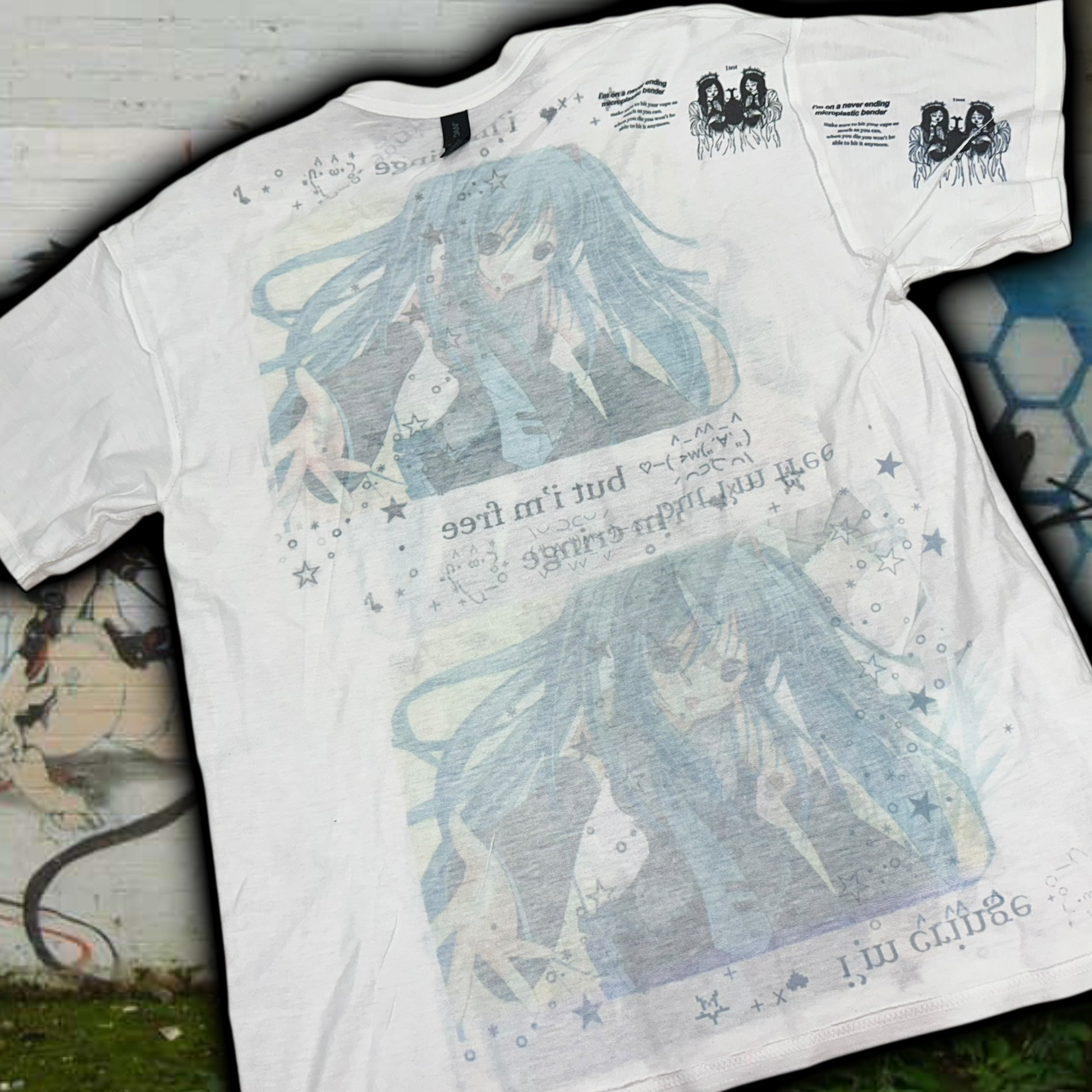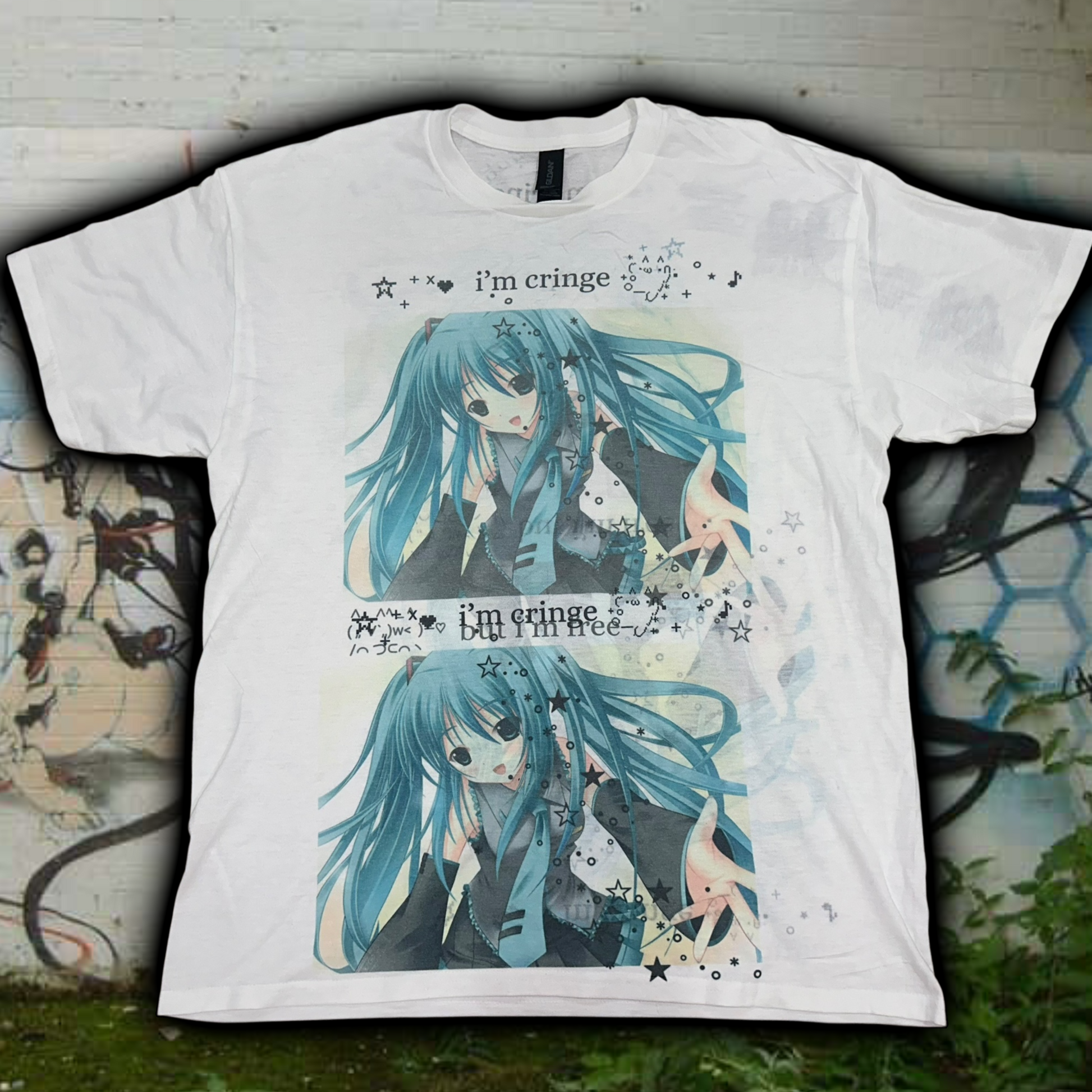 tester for color correction on miku graphic, with some microplastic beetle thumbnails on the inside of the shoulder. photos 3 and 4 are the inside of the shirt